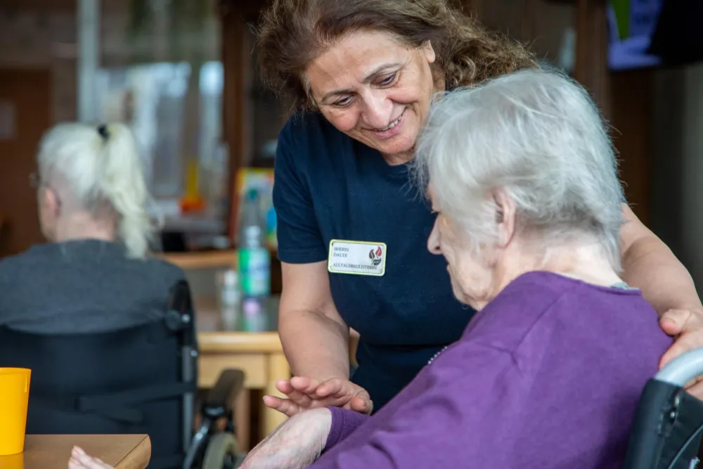 Ein besonderes Augenmerk richten wir auf Lebensqualität und Selbstbestimmung: Unsere Bewohnerinnen und Bewohner sollen aktiv am Alltag teilnehmen können, sei es in gemeinschaftlichen Aktivitäten, musikalischen Angeboten, therapeutischen Gruppen oder Festen im Jahreslauf. Für uns bedeutet professionelle Pflege, auf Menschen einzugehen, Beziehungen aufzubauen und individuelle Bedürfnisse zu erkennen.